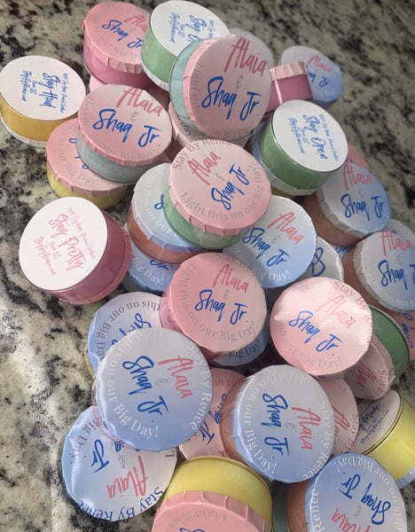 Custom tea light party favors with your choice of image or short phrase. Great for marketing, special occasions or gifts for your colleagues.